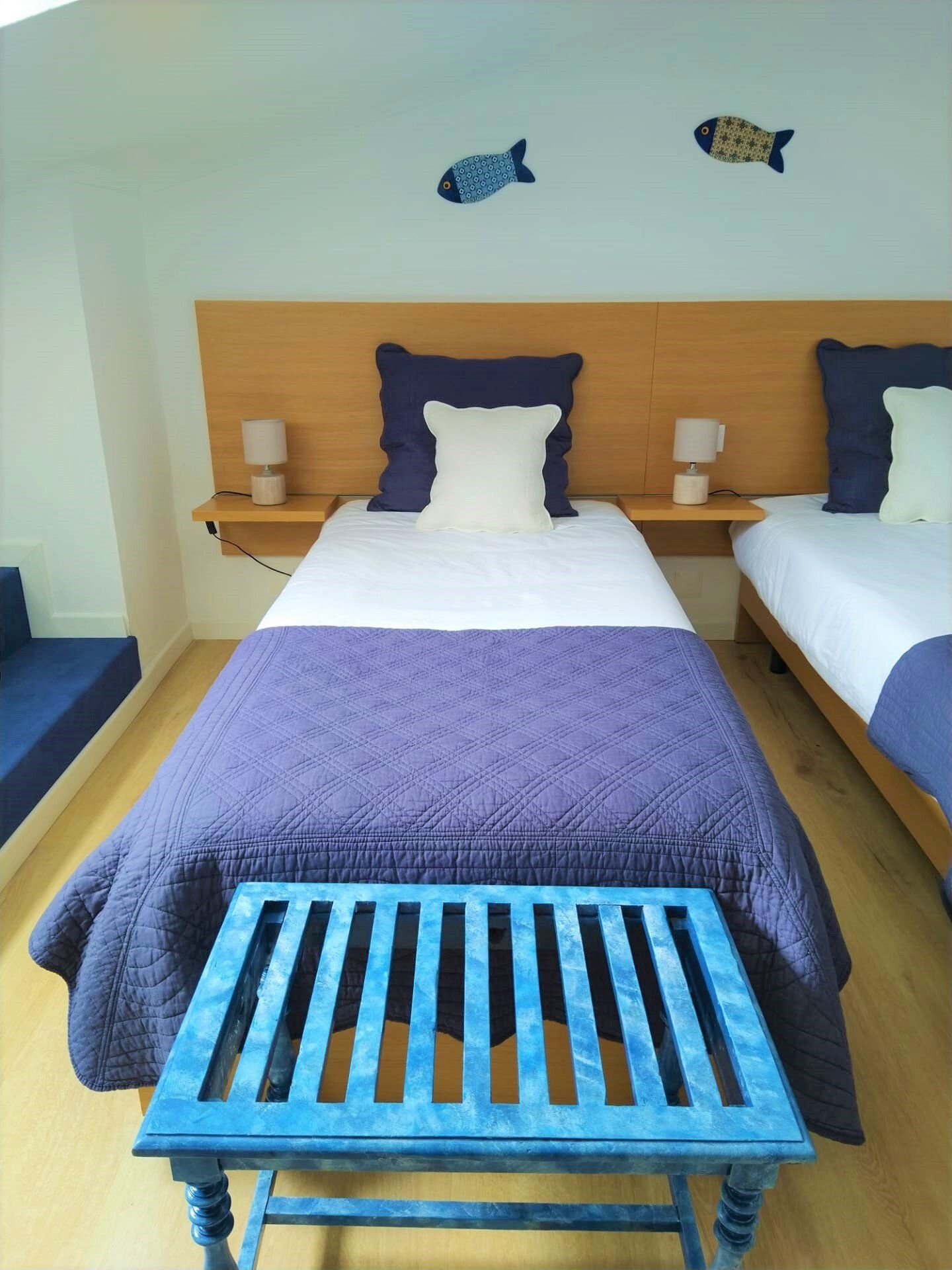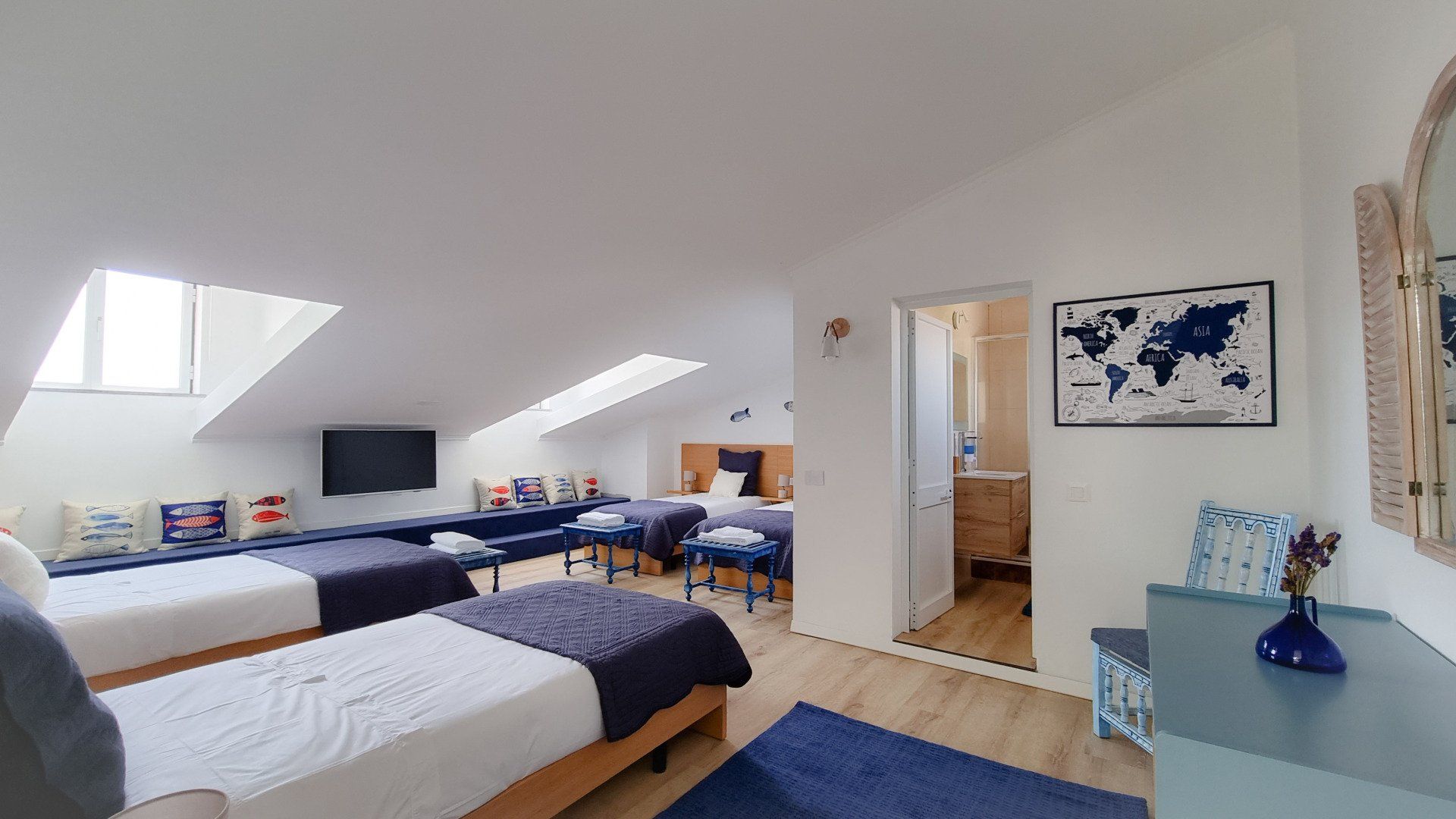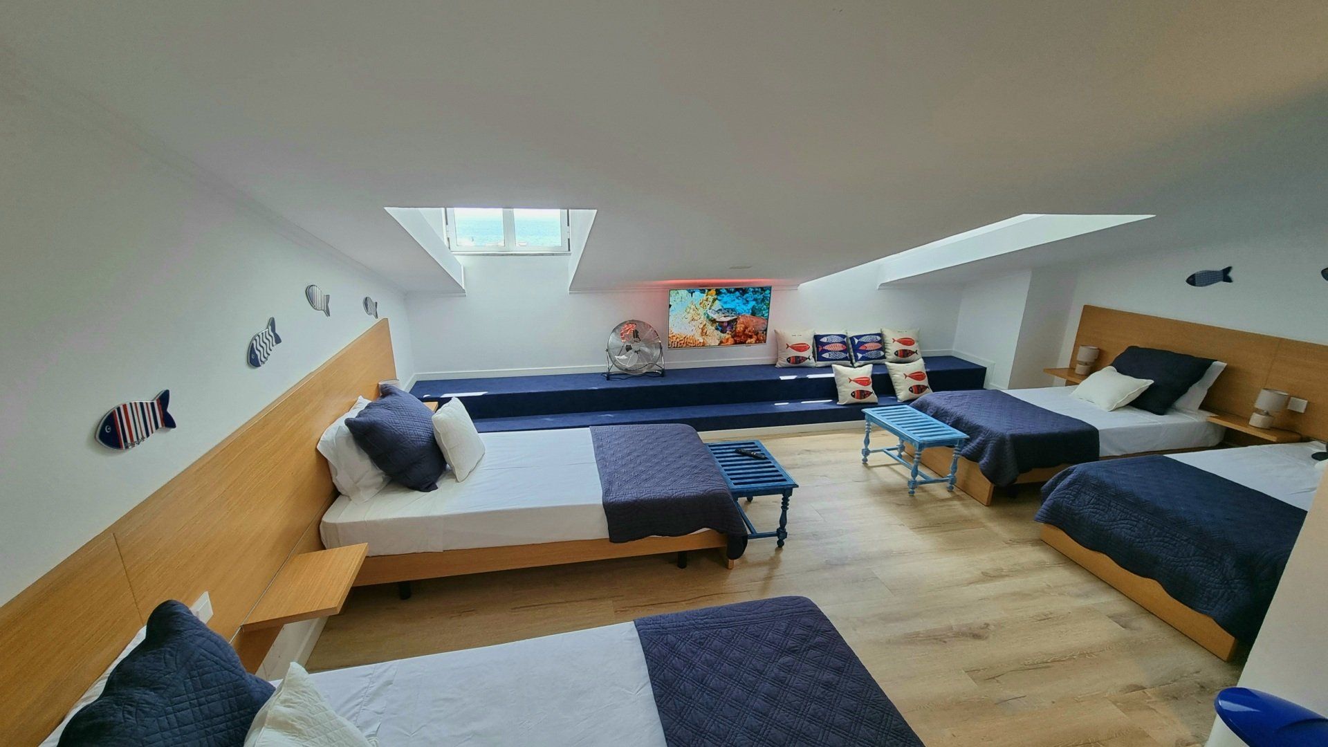 Quadruple room with 4 single beds, sea view, private bathroom, possibility of adding an extra bed, Smart TV.