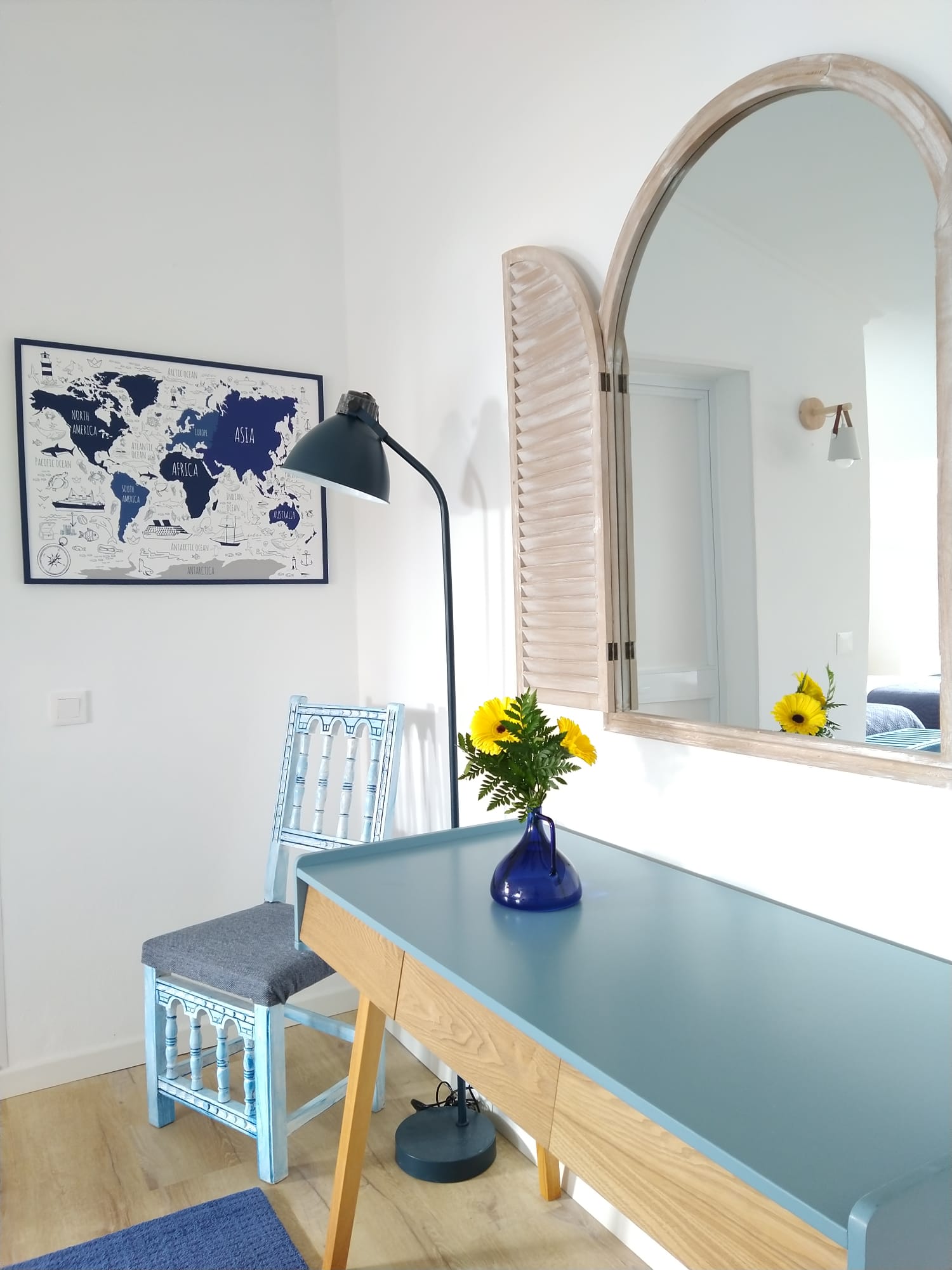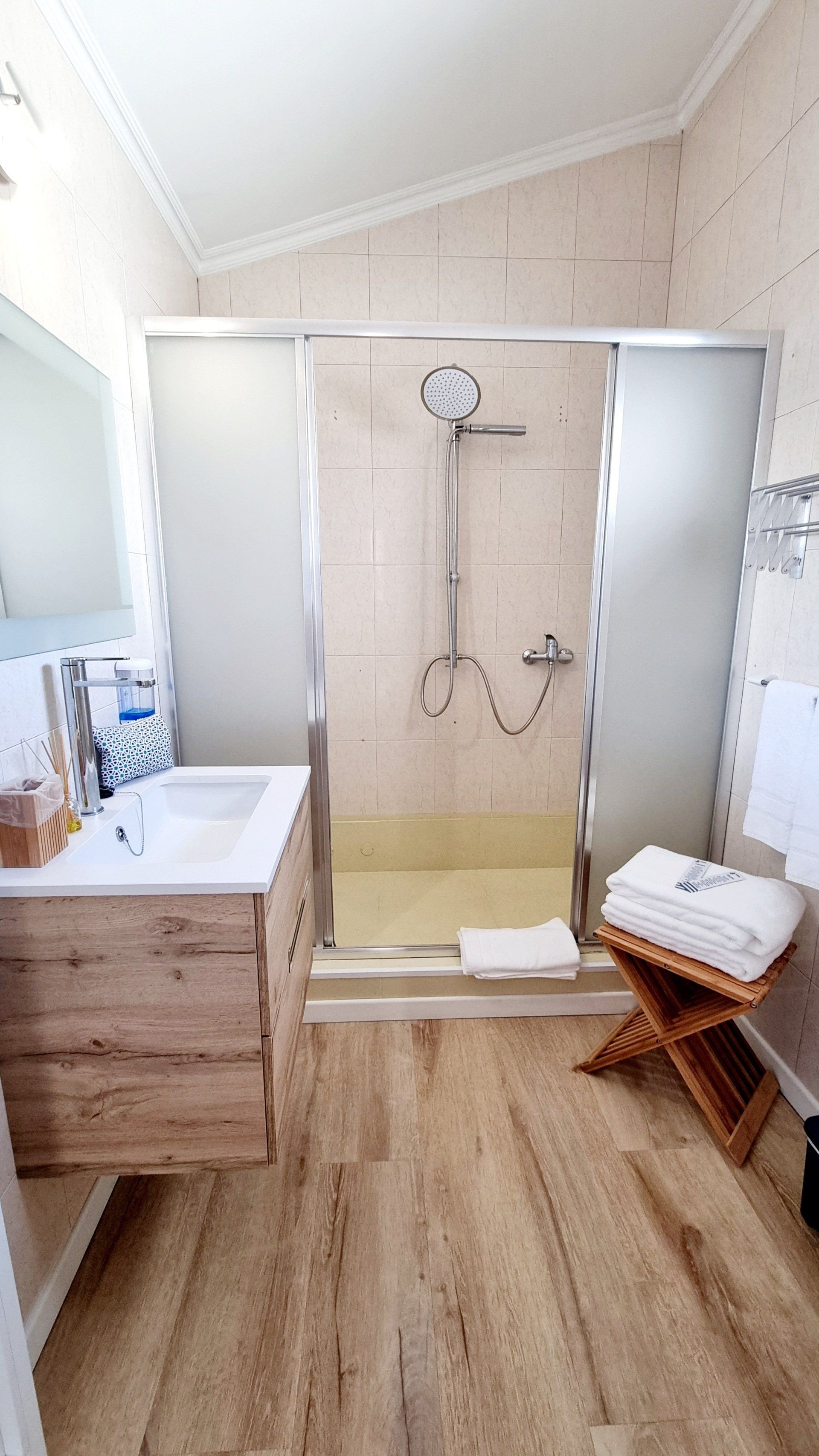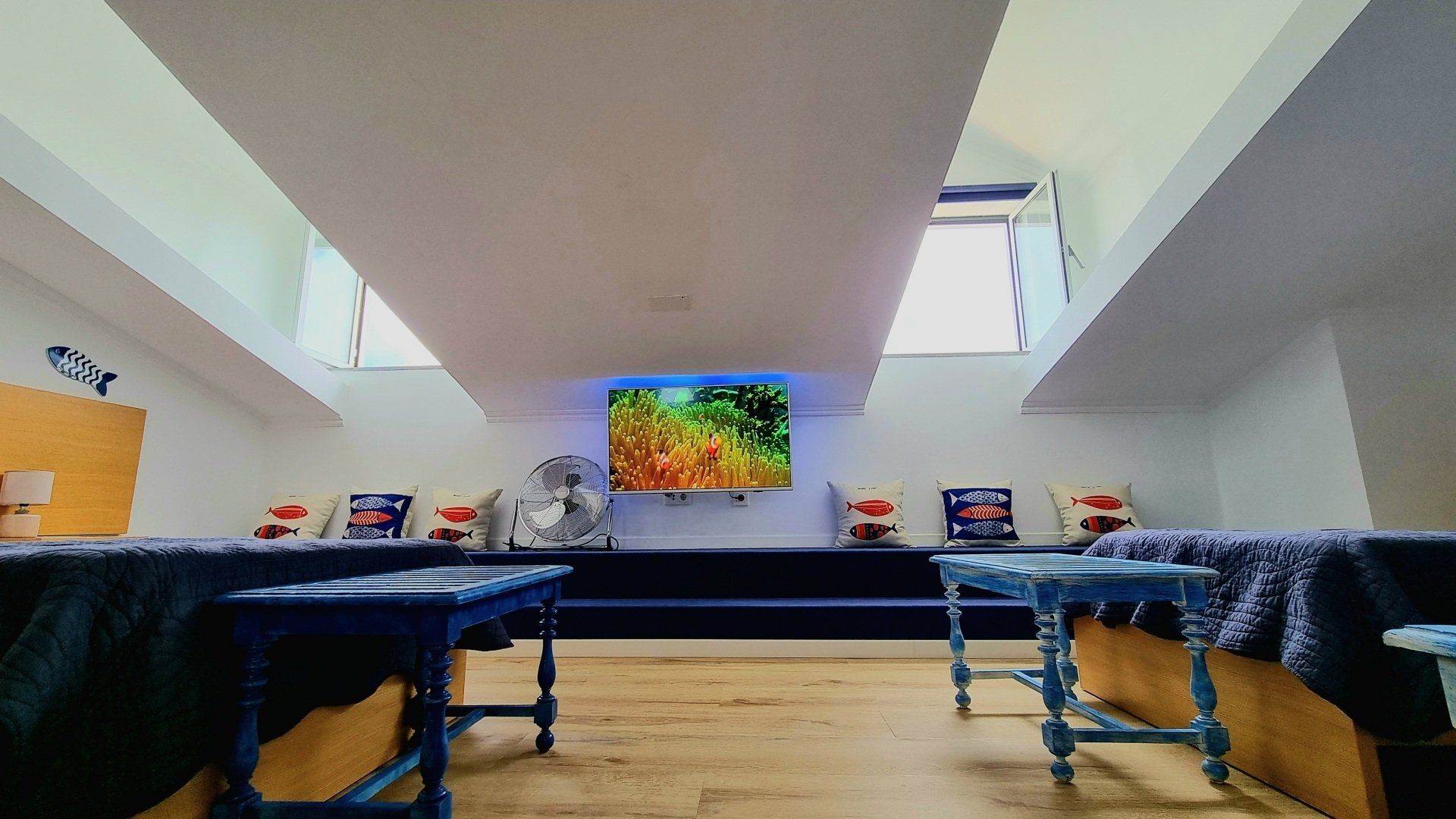 Quadruple room with 4 single beds, sea view, private bathroom, possibility of adding an extra bed, Smart TV.