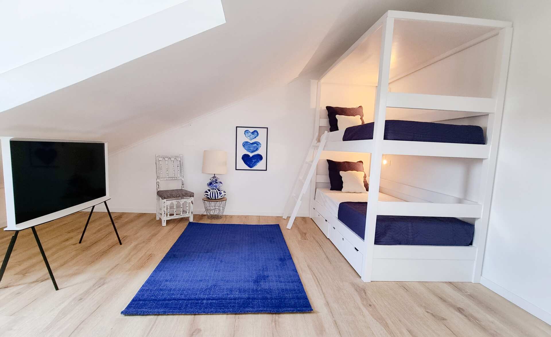 Quadruple room with two bunk beds, possibility of adding two extra beds, private bathroom, Smart TV